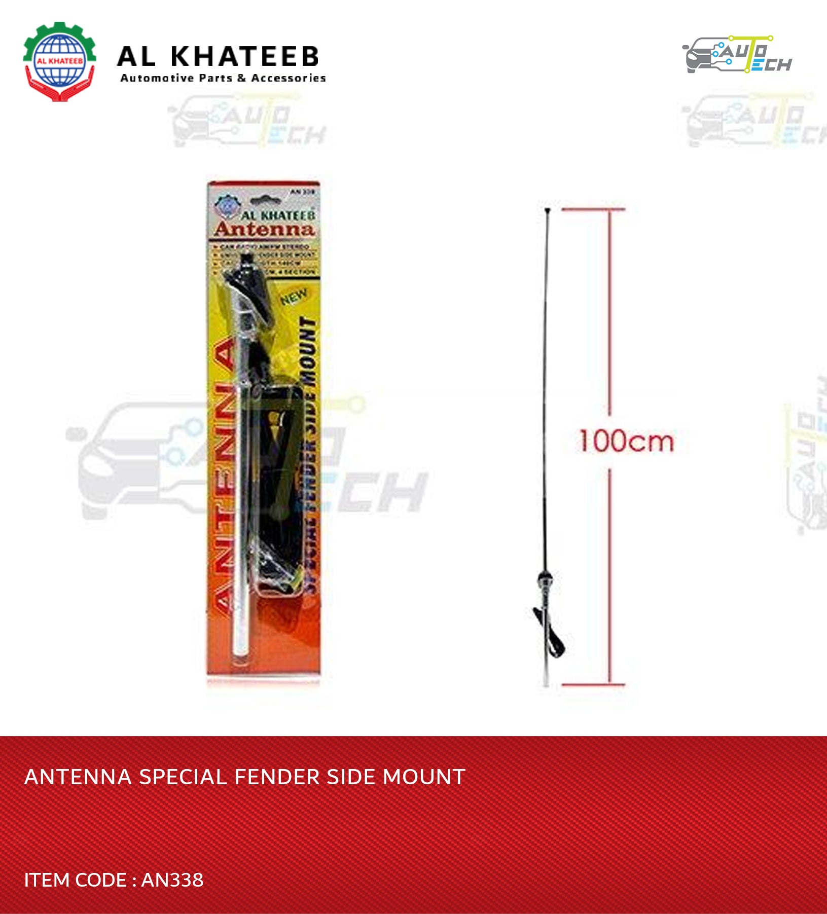 AutoTech Universal Car Special Fender Side Mount Antenna Stainless Steel Audio Stereo Radio 100CM, Chrome