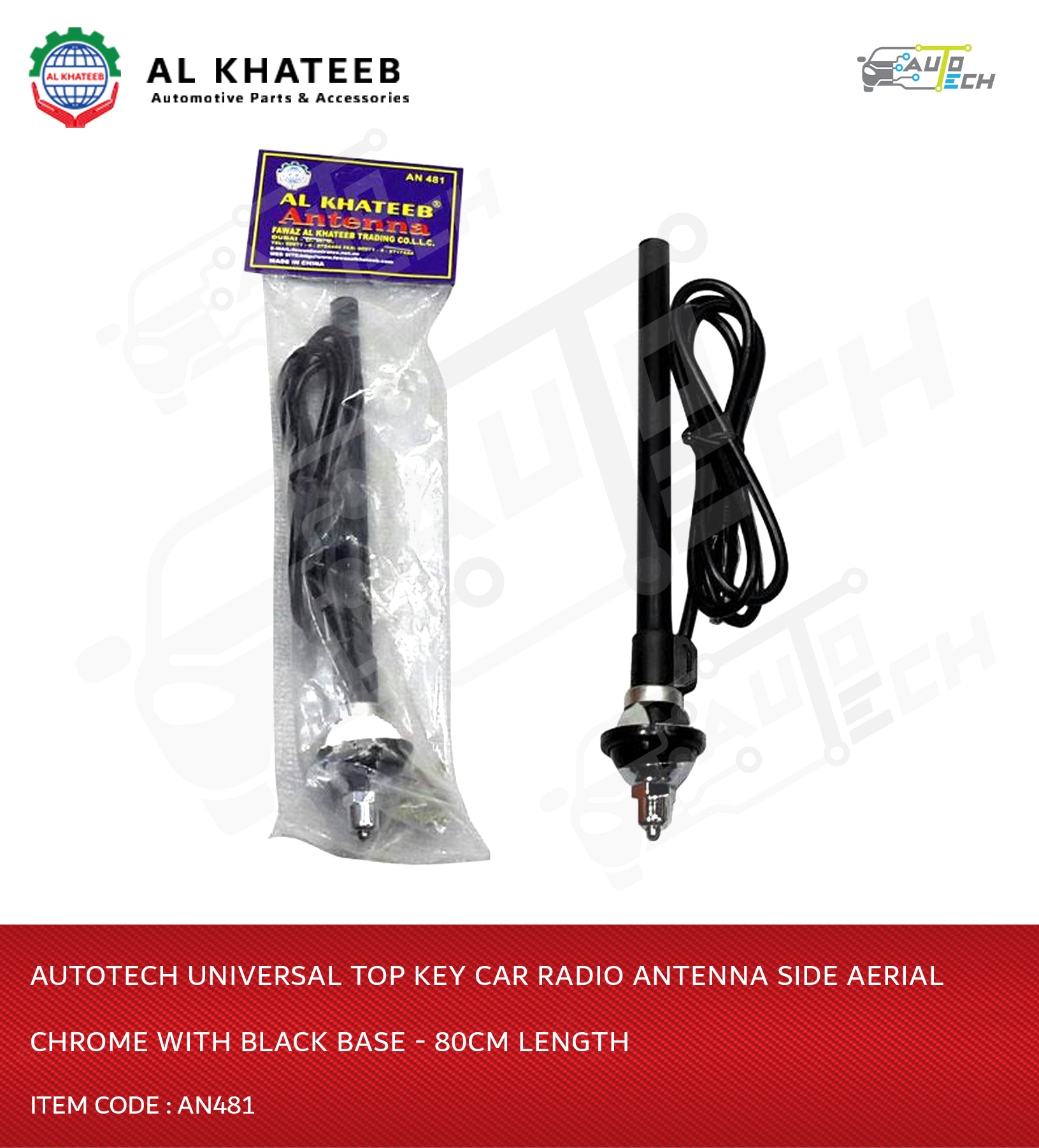 AutoTech Universal Top Key Car Radio Antenna Side Aerial Chrome With Black Base - 80cm LengthShow More