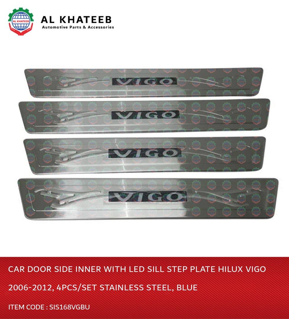 Hilux Vigo Al Khateeb Car Door Side Inner With LED Sill Step Plate 2006-2012, 4PCS/Set Stainless Steel, BlueShow More