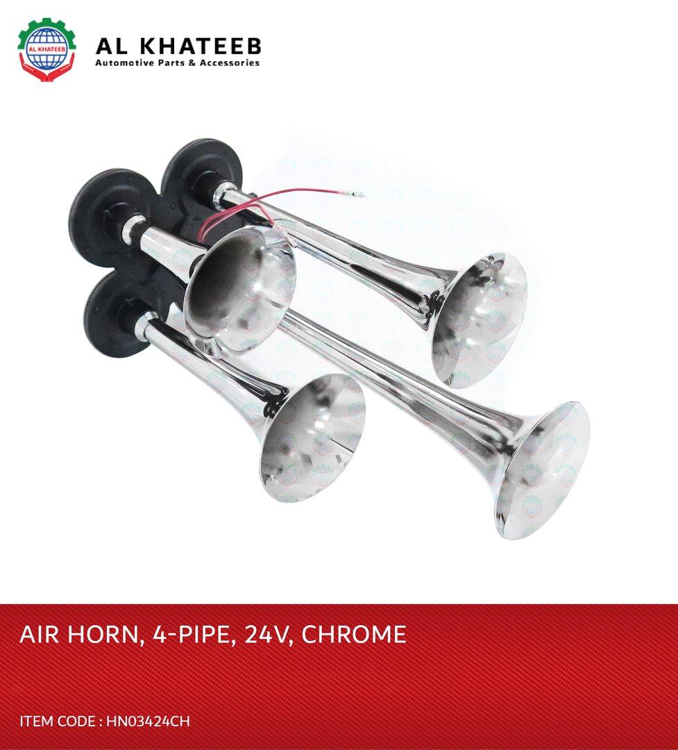 Premier Universal Car 4 Pipe Air Pressure Horn with 24 Volt Built N Relay Chrome