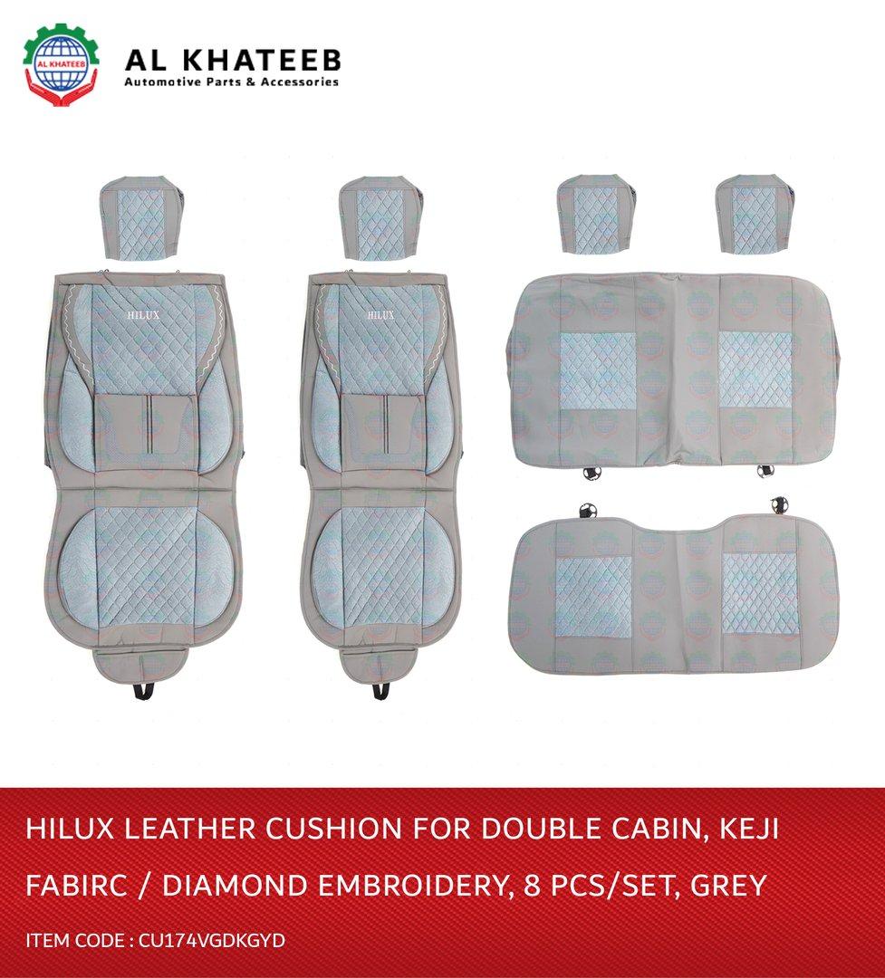 Car Cushion Cover Hilux Leather, Keji Fabric, Diamond Embroidery Double Cabin 8 Pcs/Set Dark Grey Hilux Vigo 2006-2014