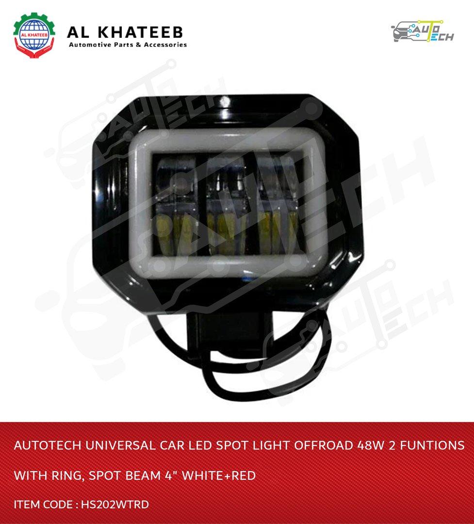 AutoTech Universal Car LED Spot Light Offroad 48W 2 Funtions With Ring, Spot Beam 4" White+Red