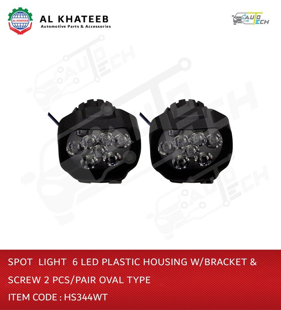 AutoTech Universal 6 LED White Spot Light Oval Style With Bracket and Screws 12-24V, Black Plastic Housing 1PC