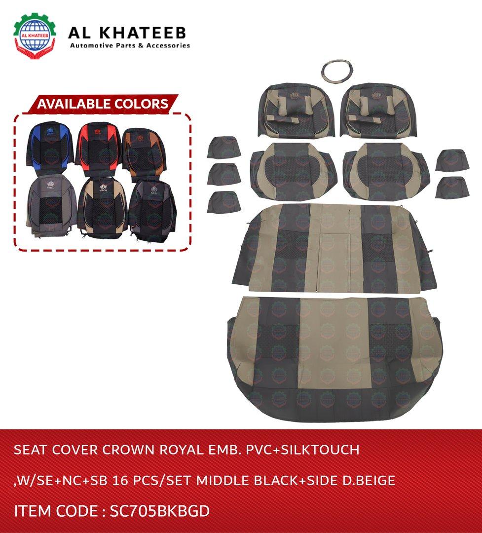 Seat Cover Crown Royal Emb. Pvc+Silktouch ,W/Se+Nc+Sb 16 PCS/Set Middle Black+Side D.BeigeShow More
