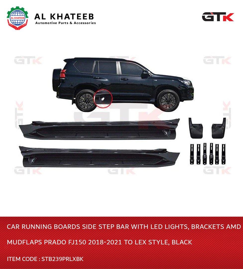 Car Running Boards Side Step Bar With Led Lights, Brackets Amd Mudflaps Prado Fj150 2018-2021 Style, Black