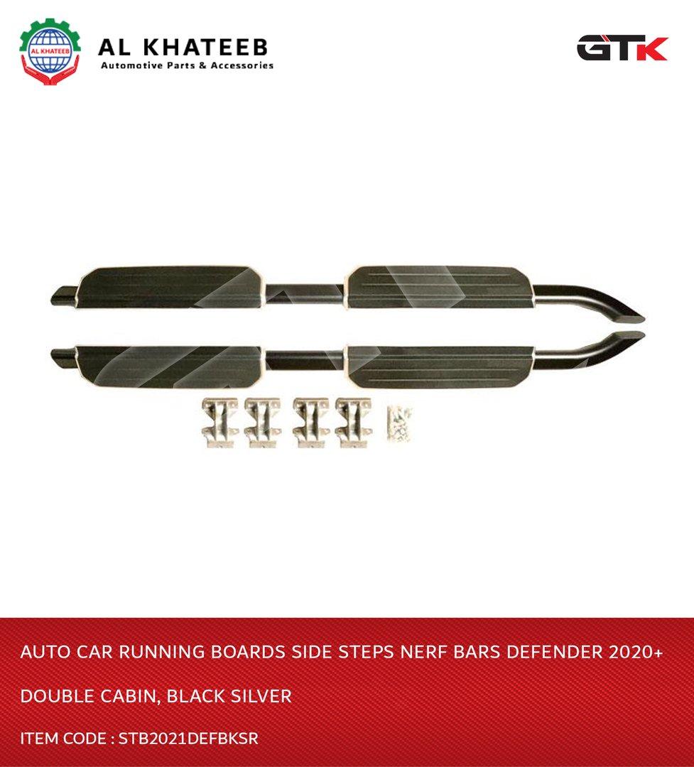 Auto Car Running Boards Side Steps Nerf Bars Defender 2020+ Double Cabin, Black Silver