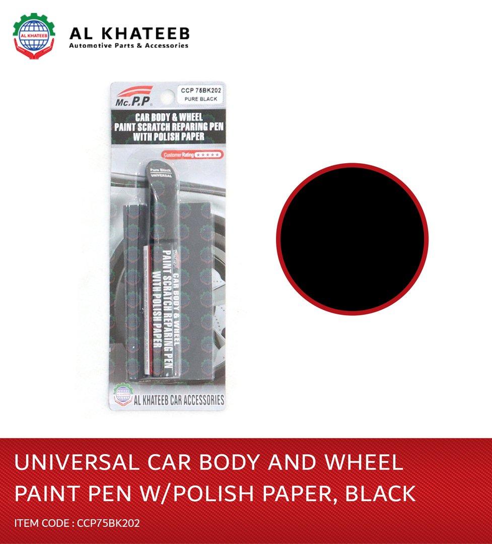 Universal Car Body & Wheel Paint Scratch Repairing Pen With Polish Paper, Pure BlackShow More