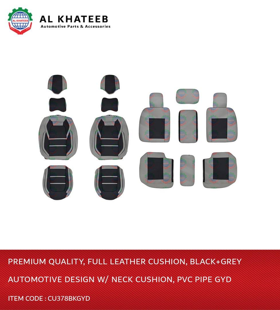 PREMIUM QUALITY, FULL LEATHER CUSHION, BLACK+GREY AUTOMOTIVE DESIGN W/ NECK CUSHION, PVC PIPE GYD